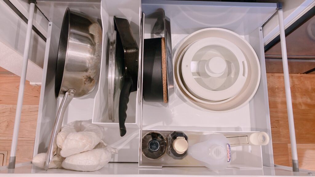 物のいるいらないがきちんとできれば、あとは収納スペースに収めるだけ。余計な食器収納などのグッズも不要で不便なく使えます。