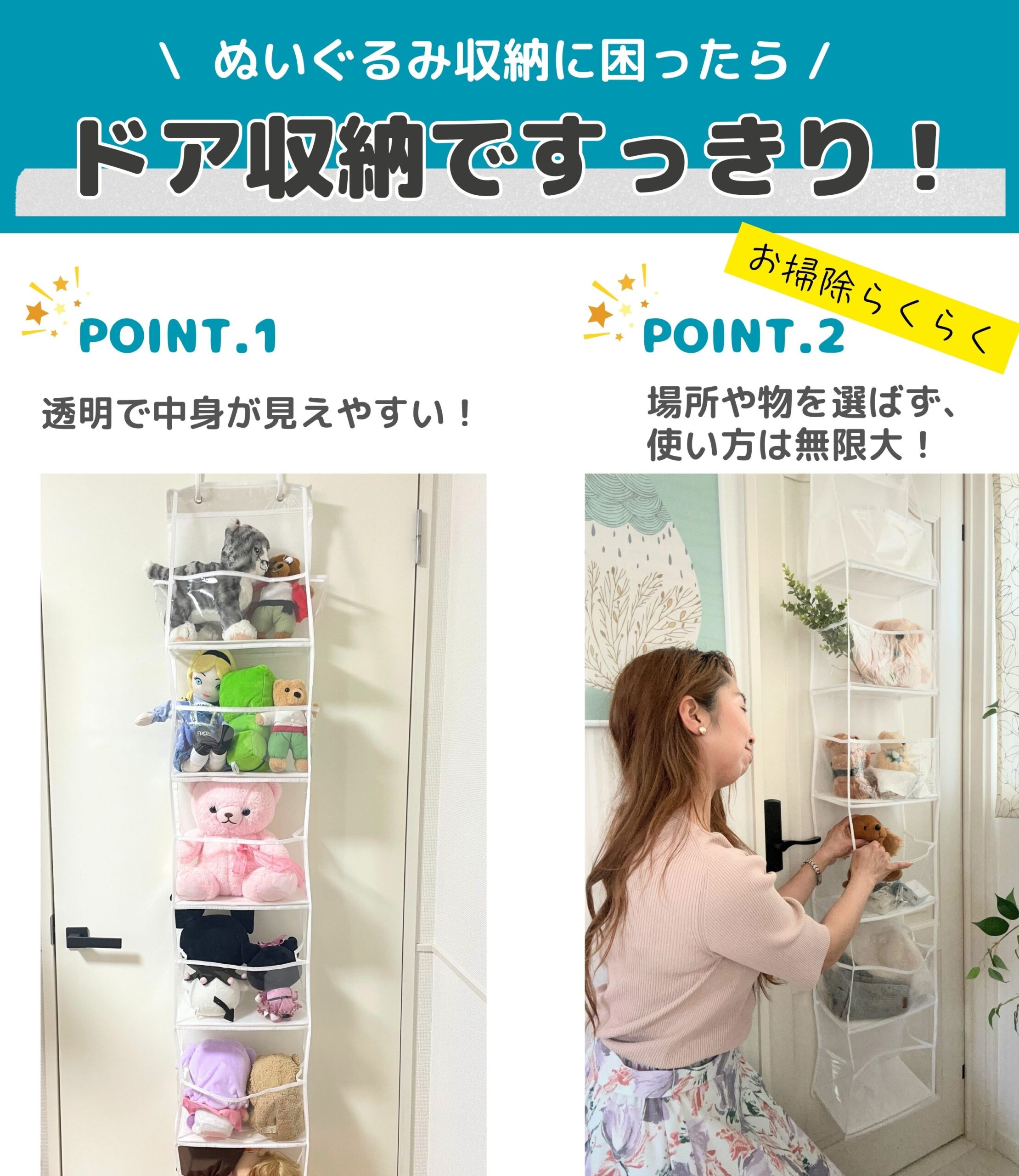 ぬいぐるみ収納だけでなく、手袋やマフラーなどの季節用品からお出かけ前のハンカチ・マスクなどの小物、無くしがちな充電ケーブルやリモコン類などの定位置など、お部屋の整理整頓に役立ちます。