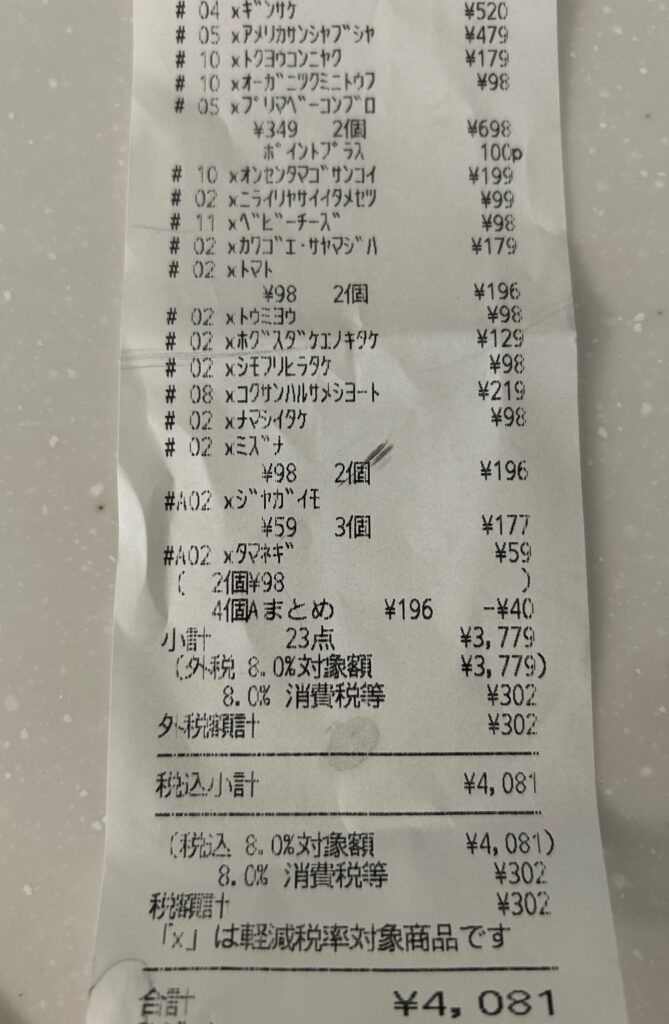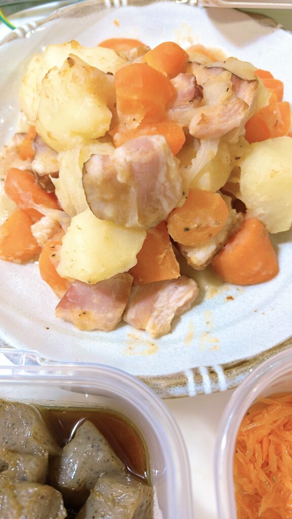 物価高でしたが水菜で3品、豆苗やじゃがいもにんじんなど価格の安定している根菜などをたくさん使ったので材料費は¥4700弱に抑えられました。(作業時は1月です)