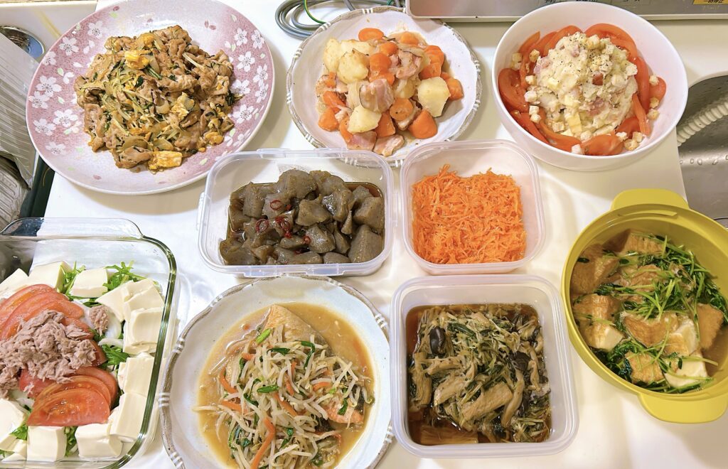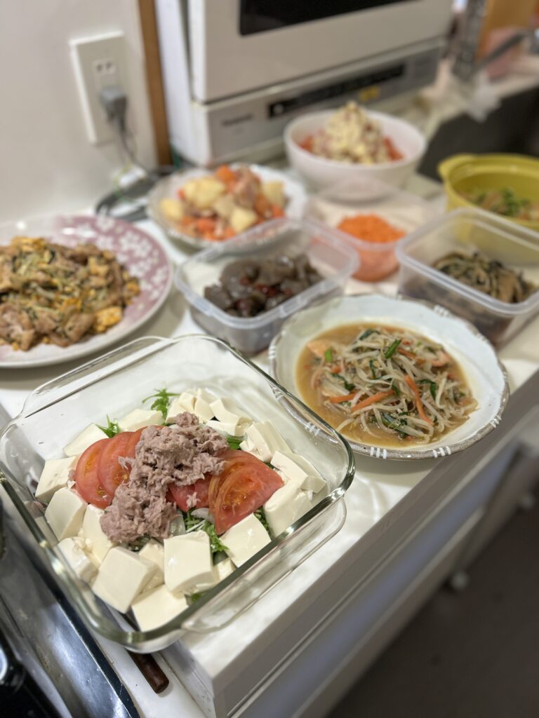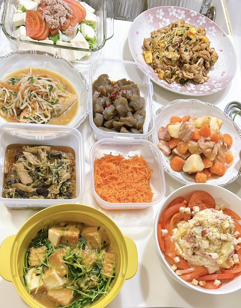 今日は3時間で10品お作りしました。たくさん作りましたが、食材をリーズナブルなものを選んだのでこれだけできました!