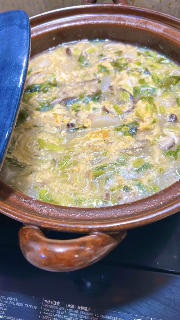 6季節は寒ーい冬。冬瓜でスープと思いましたが、スーパーに美味しそうなカブがあったのでカブと卵と春雨の中華スープにしました。ダイエットのポイントとして最初にスープで満腹感を感じるのが大事ですよ^^とろみもあってお腹から温まります。