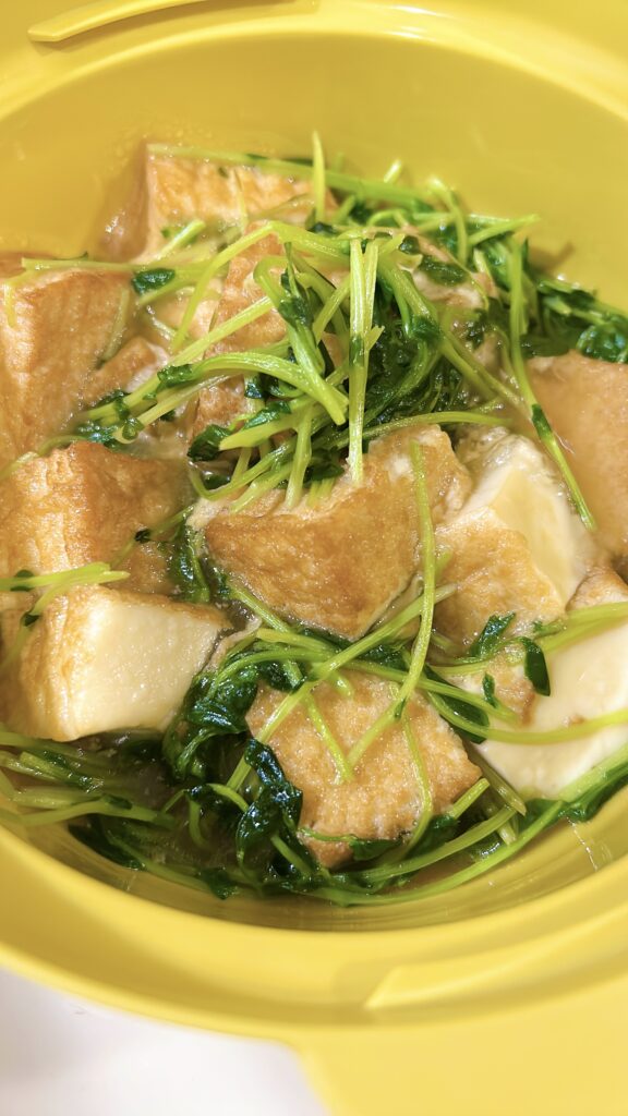 こちらも安価な厚揚げと水菜の最強作り置きコンボ!白だしであんかけにしたらこっくり美味しい^^