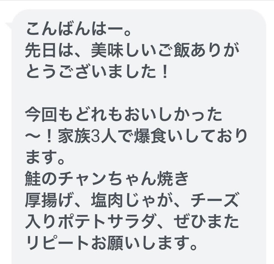 クックサポートの励みになる感想もいただきました!リピート、何より嬉しいです^^
