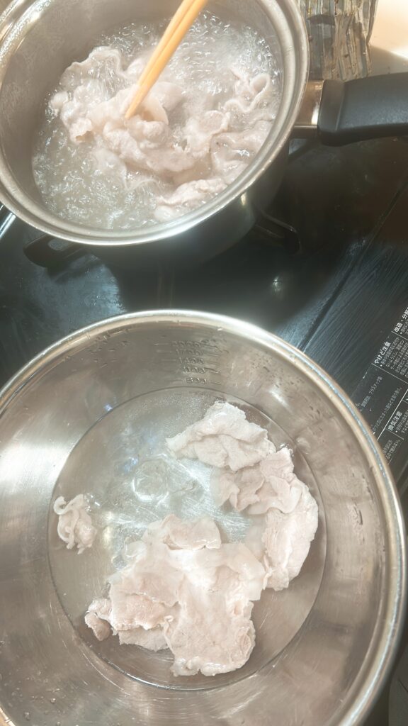 冷しゃぶも氷水用意して丁寧におつくりしました。