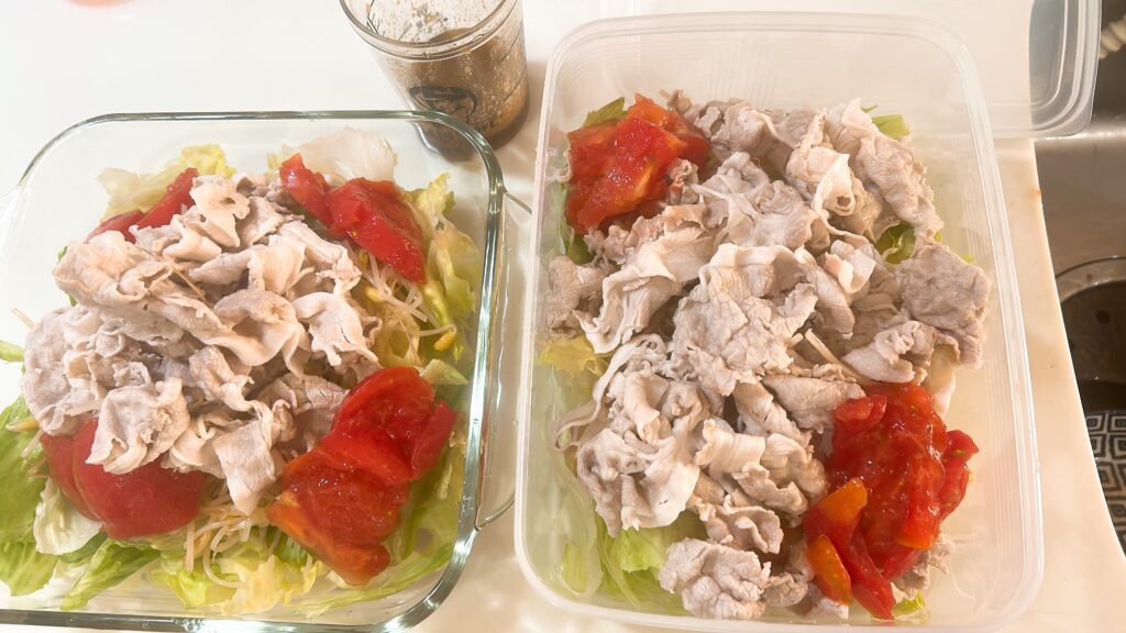 たくさんできたので、2回に分けた冷しゃぶサラダです。