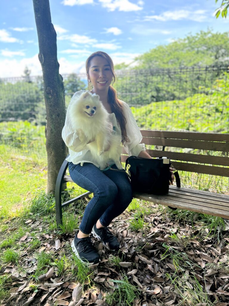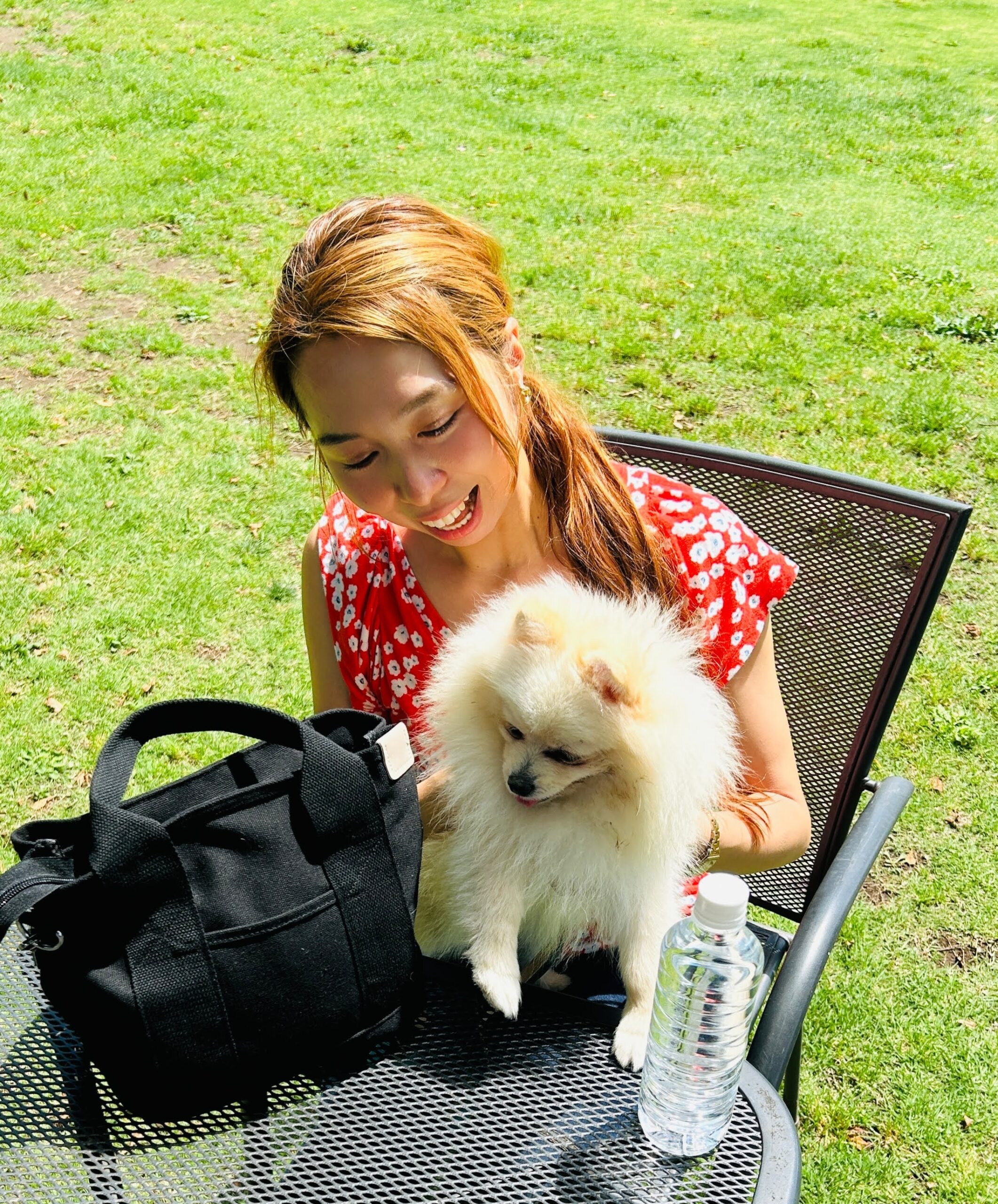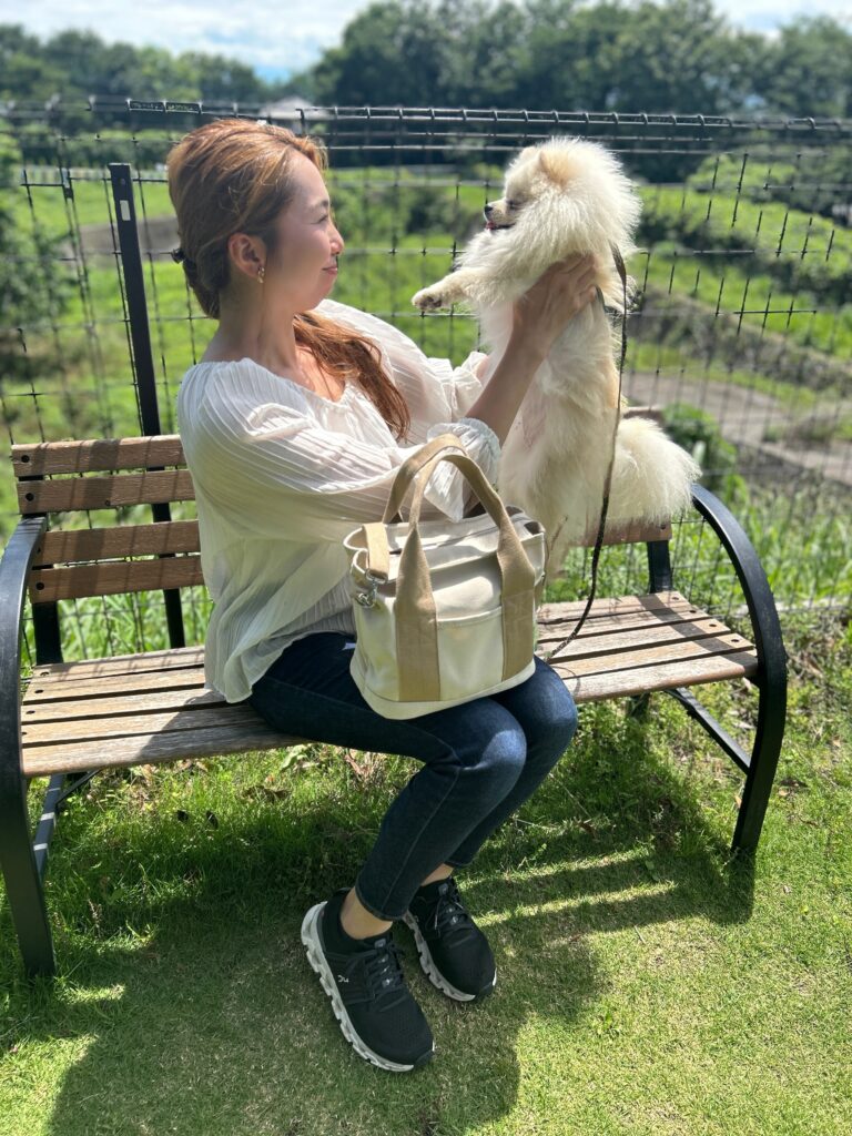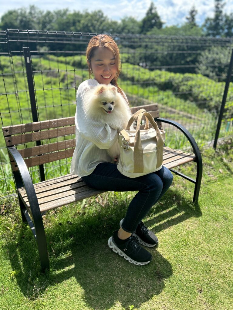 日差しも出ていてお天気も良かったある日、お散歩バッグと一緒にワンちゃんコミュニティパークにて