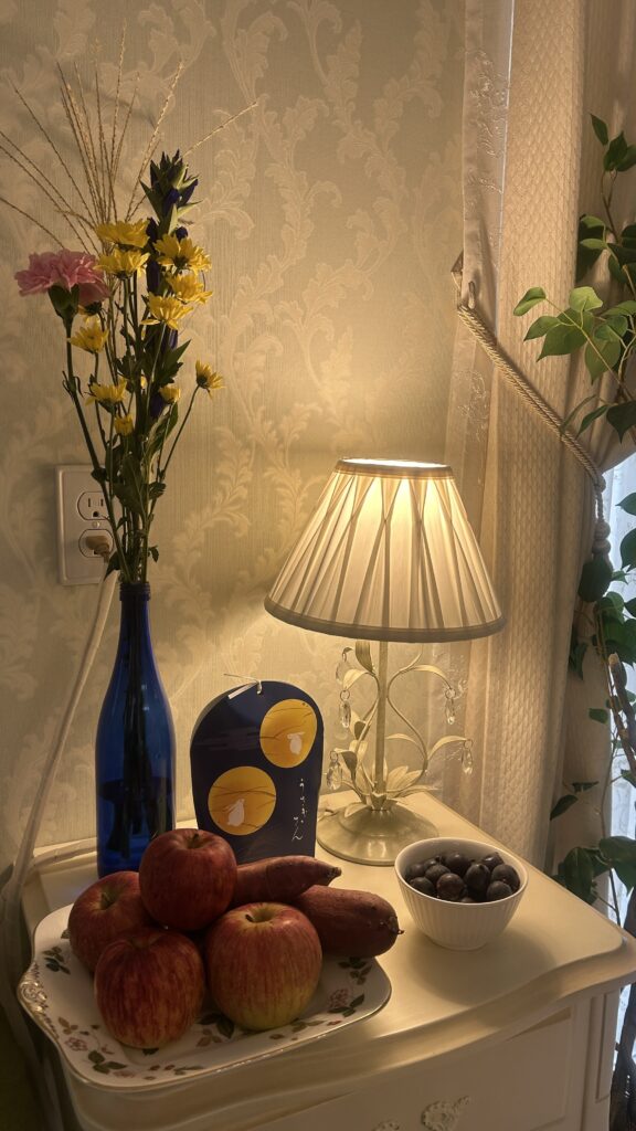 季節はちょうど秋だったので、柿や梨、葡萄などの果物がたくさん。秋の恵みに感謝ですね。
