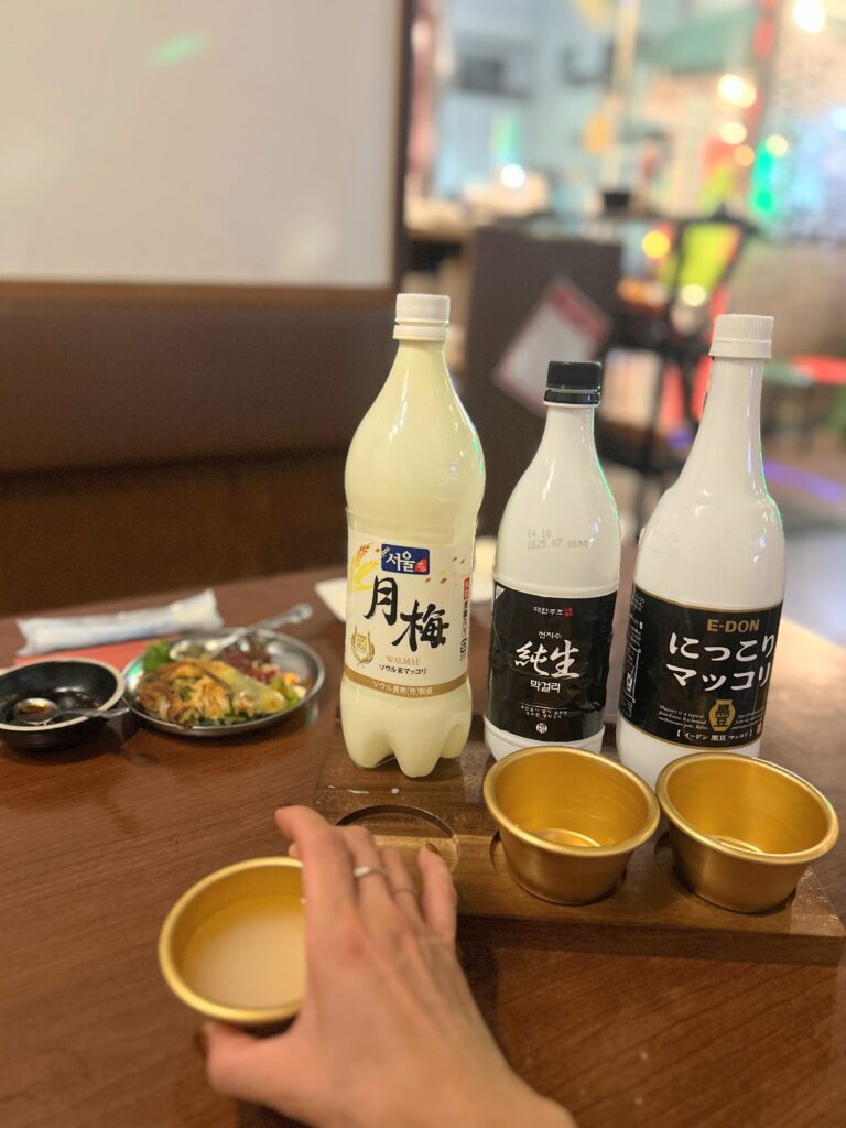 マッコリ飲み比べ。美女を囲んでお酒が進む〜〜