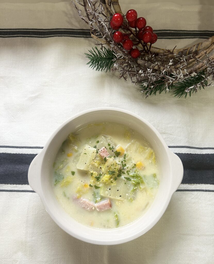 豆乳と白菜とベーコンのシチュー